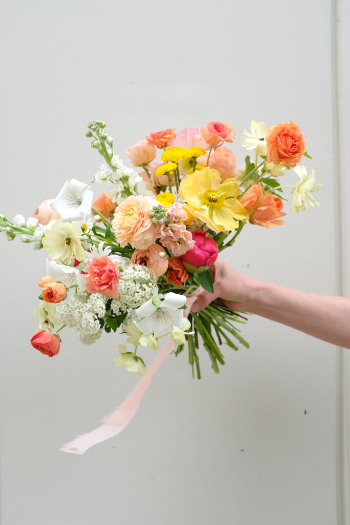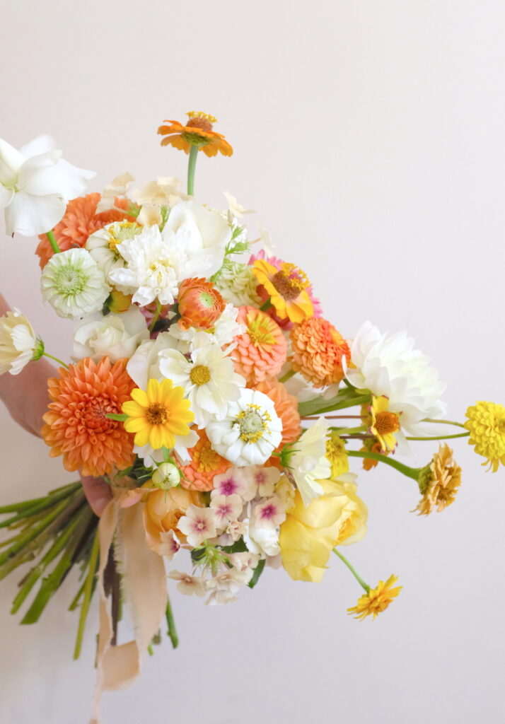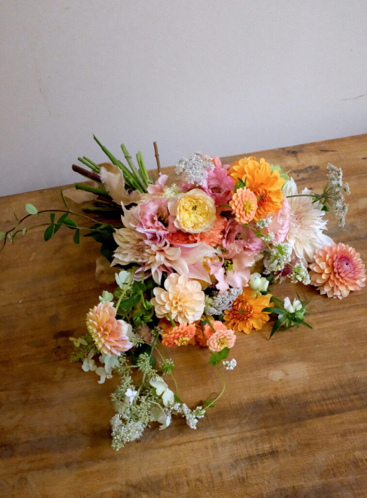 En tant que fleuriste mariage, nous avons fait le choix assumé de travailler principalement avec des fleurs fraîches locales et de saison, cueillies à proximité de notre atelier. Cette démarche garantit non seulement la fraîcheur et la qualité de nos compositions, mais elle reflète aussi notre engagement pour une approche florale durable et authentique. Chaque mariage est l’occasion de créer des bouquets sur mesure, élégants et poétiques, qui racontent l’histoire unique des mariés tout en respectant l’environnement.